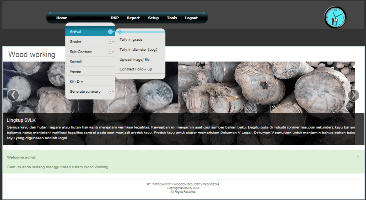 Sistem ini membantu anda dalam pengelolaan management perkayuan pada perusahaan anda sehingga memudahkan anda dalam menghadapi audit system yang dilakukan pihak terkait.